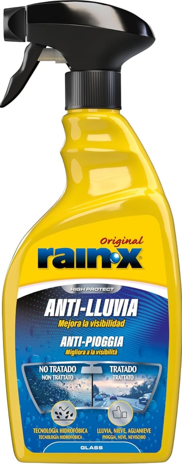 Tratamiento antilluvia de alto rendimiento para cristales que crea una potente capa hidrofóbica capaz de repeler el agua incluso sin el uso de los limpiaparabrisas a partir de cierta velocidad. Mejora notablemente la visibilidad bajo la lluvia y ofrece una protección duradera, siendo uno de los productos más reconocidos en el cuidado de cristales.